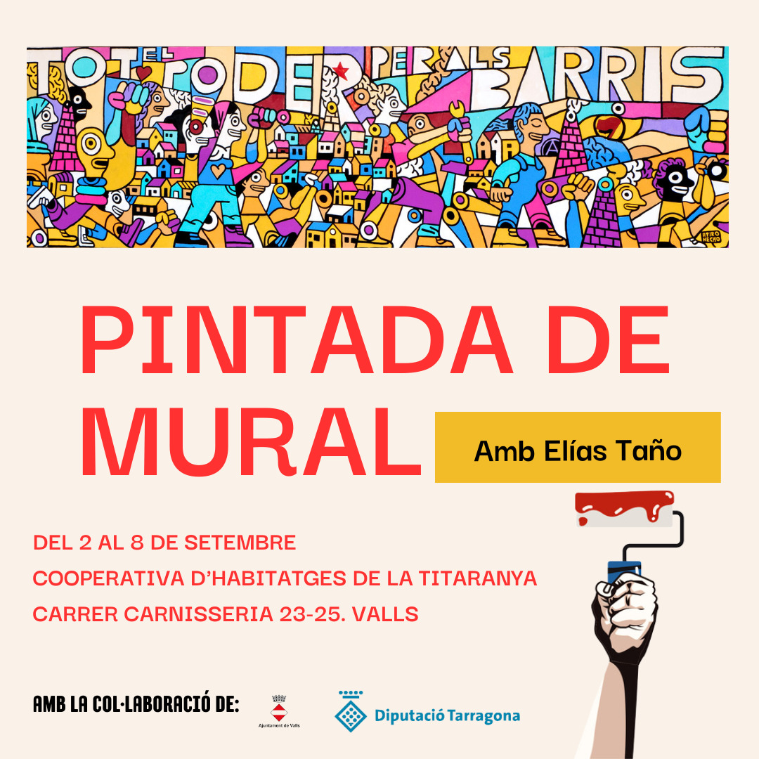Valls, 02/09/2024 —La Titaranya i La Turba impulsen la creació d’un mural al carreró de Ca Robusté (Carrer Carnisseria 25) amb l’objectiu de representar el moviment sòcio-polític, econòmic i cultural que han construït i explicar aquestes alternatives a la comunitat.