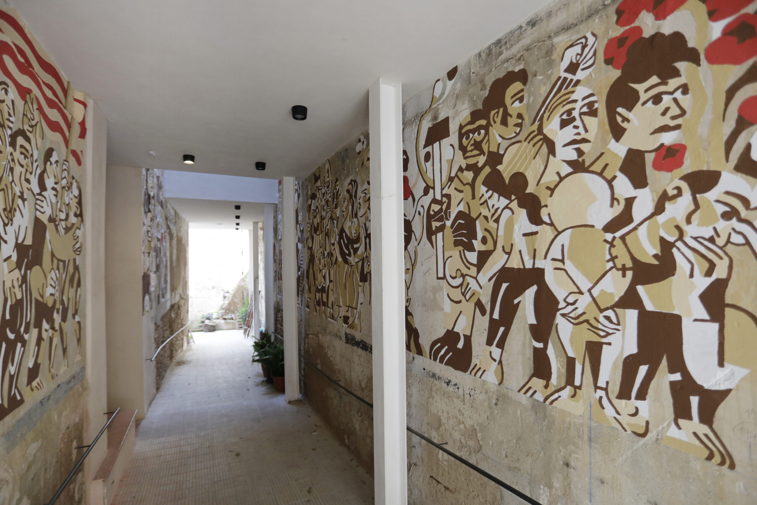 En el següent mural tornen a aparèixer les roses en al·lusió a la cançó de Lluís Llach, per la necessitat que neixin flors a cada instant. A la dreta apareixen dos tòtems del pensament i la lluita obrera: Kropotkin amb una barba- volcà enorme, el príncep de l’anarquisme que representa les idees més nobles del pensament llibertari-anarquista, i a sobre Rosa Luxemburg com a part del pensament espartaquista, de les idees marxistes i socialistes que li van costar la vida, simbolitzats ambdós amb les roses negre i roja.